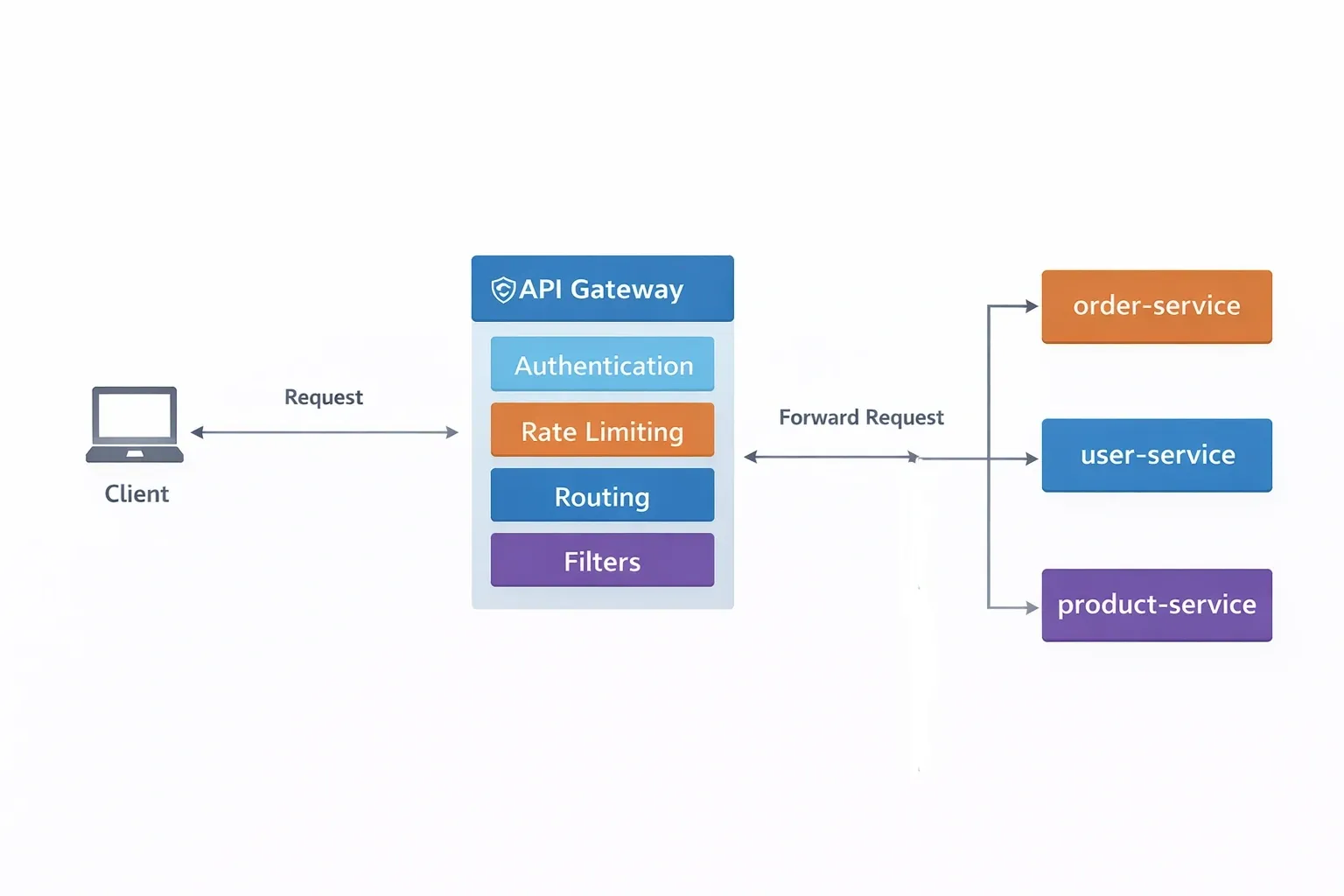 An API Gateway is the single entry point for all client requests. Instead of clients calling each microservice directly, they call the gateway. The gateway handles routing, authentication, rate limiting, SSL termination, request transformation, and logging in one place.