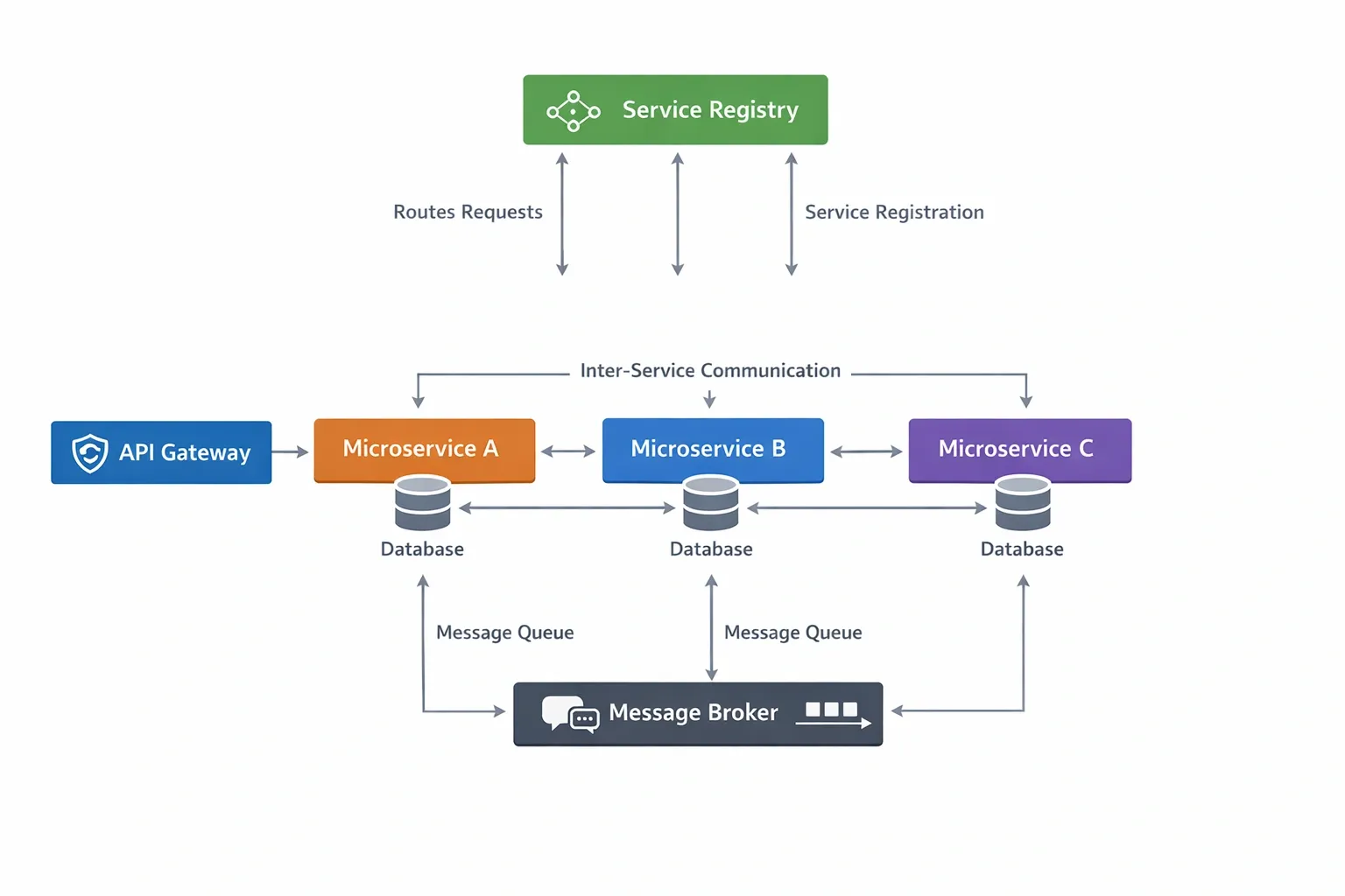 The service registry is the central directory. Every service instance registers itself on startup and sends periodic heartbeats. If a heartbeat stops, the registry removes the instance.