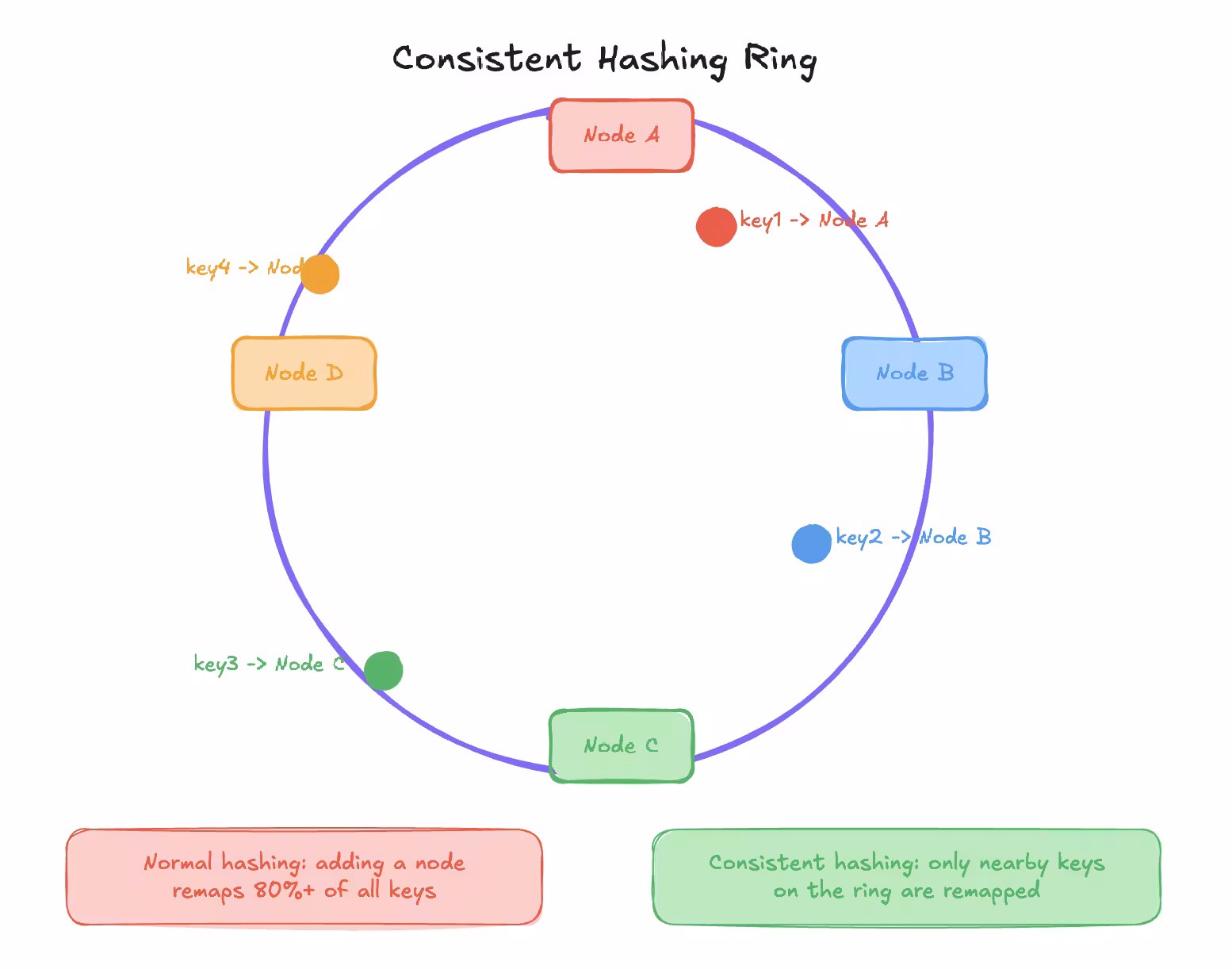 - Each physical node has multiple virtual nodes