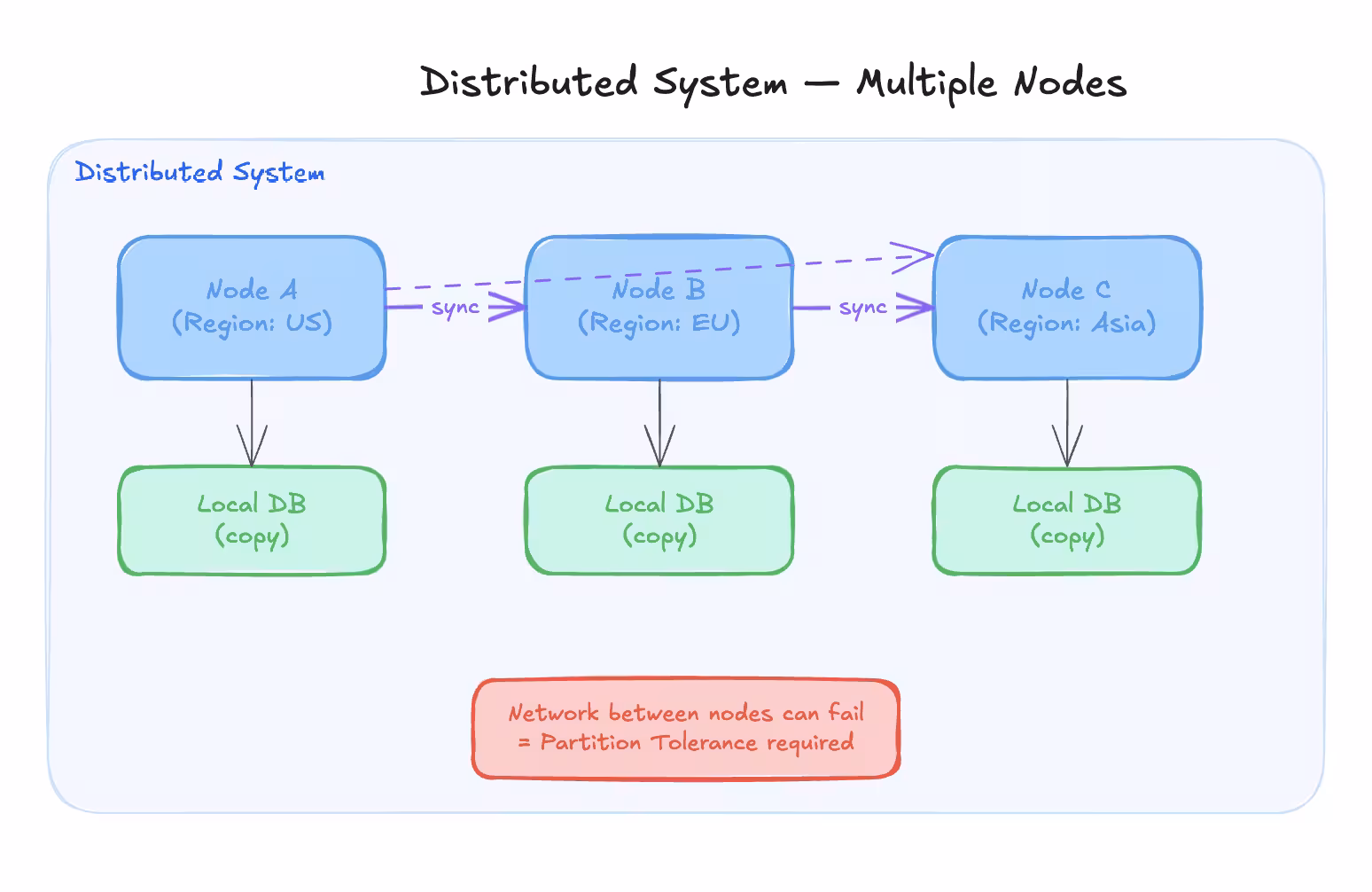 - Stored across nodes or regions