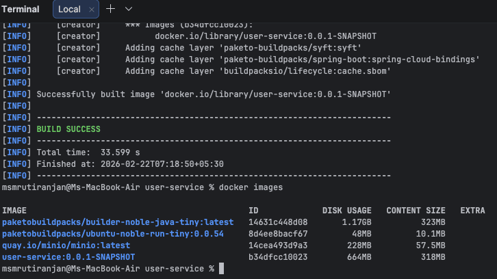 ./mvnw clean install spring-boot:build-image, now this will start the build process and will generate a local image of your application. To skip the test cases use flag-DskipTests