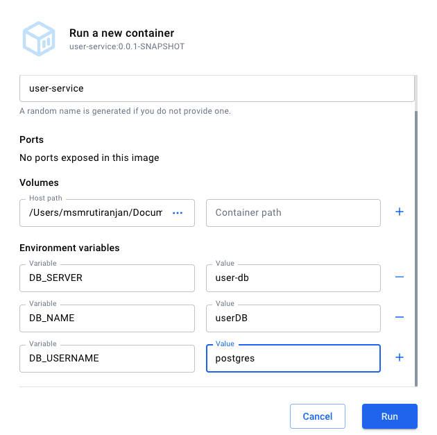 application-<profile>.propertiesor.ymlfile and choose that property file to run for docker e.g.,SPRING_PROFILES_ACTIVE: ${SPRING_PROFILES_ACTIVE}because if on the local machine you are connecting to db by://localhost:5432/userServiceDB, then inside docker there will be nolocalhost, you need to create another container for the database and in place oflocalhostuse that container name. Below given an example of properties file for docker profile, these values can be injected either by using a docker-compose file or with Optional settings while starting the container.
