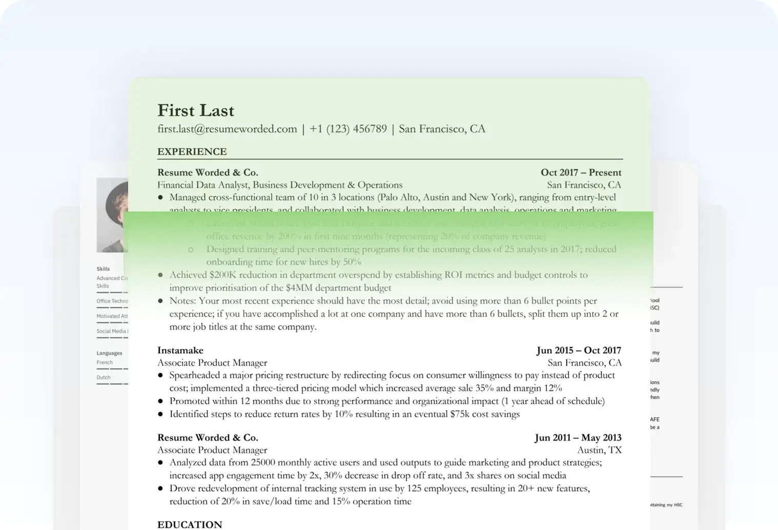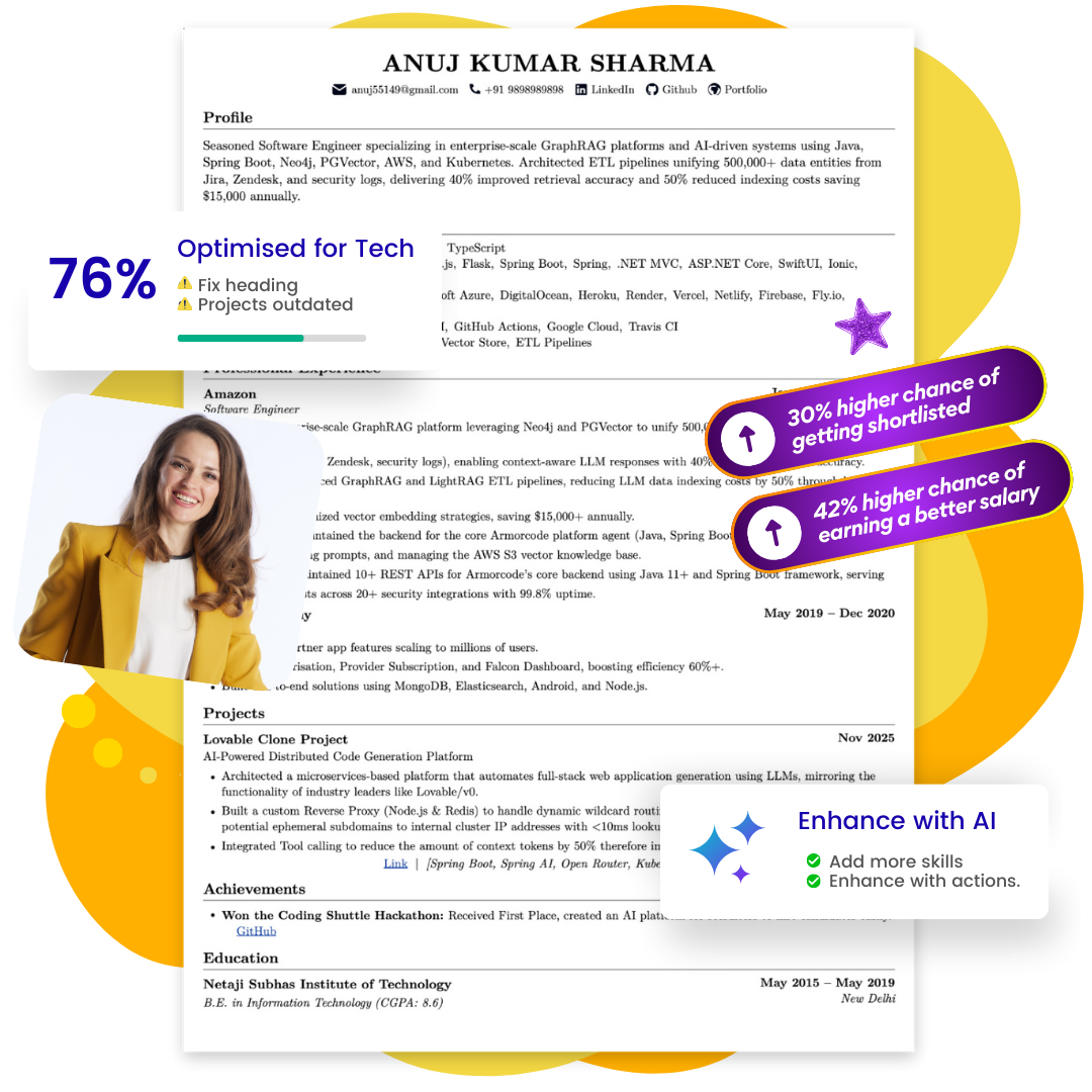Trusted by top hires at Google, Microsoft, and Amazon; this resume template delivers the highest selection success